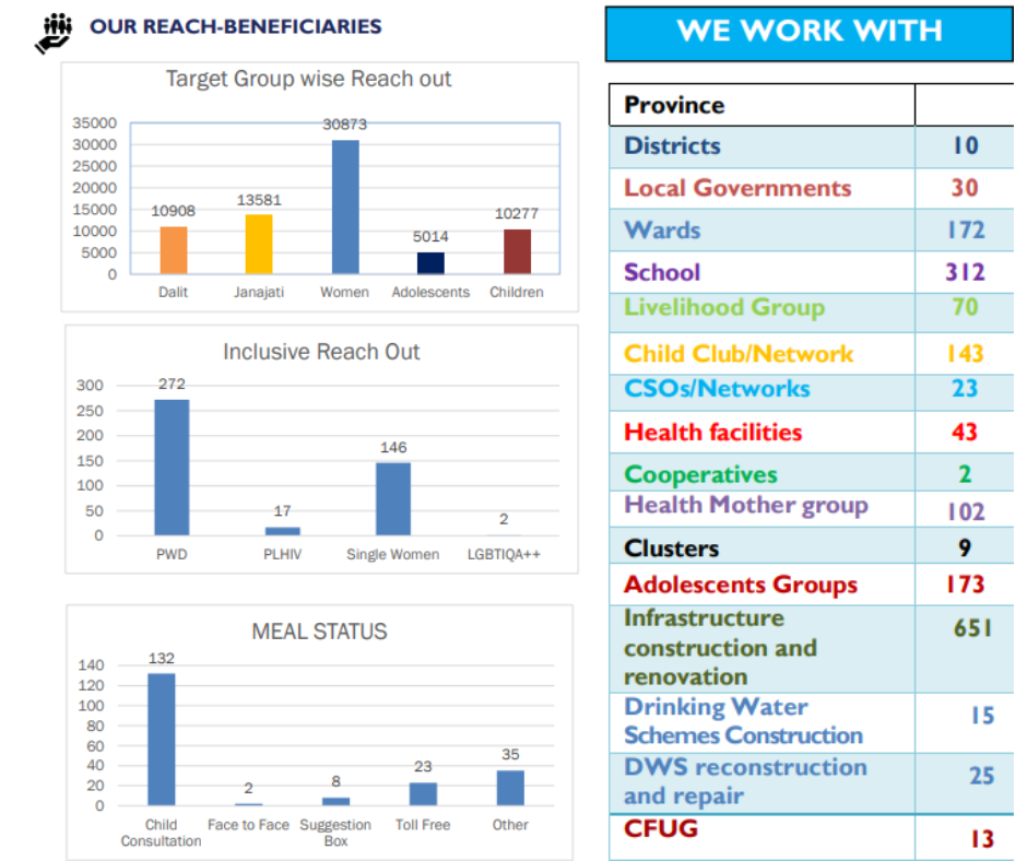 A non-profit making and social service oriented organization. It has been launching its programs in coordination and collaboration with different levels governments; NGO’s and INGO’s.