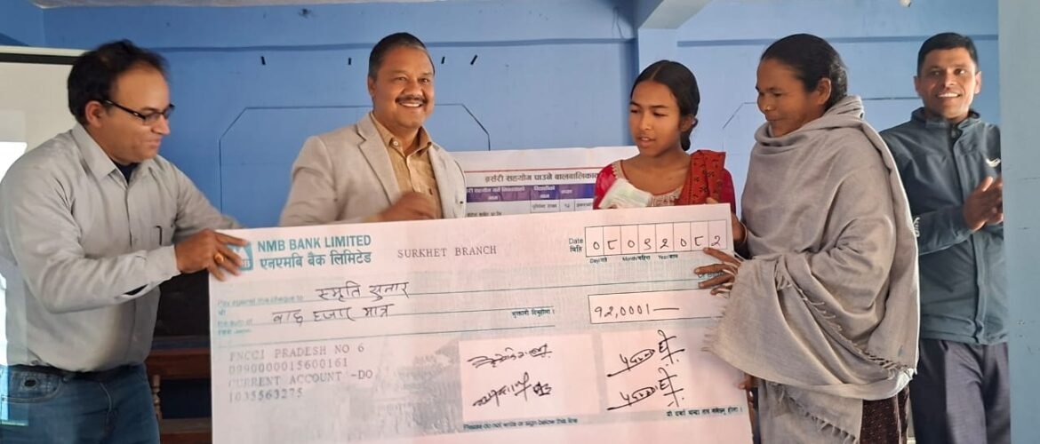 निजी क्षेत्रले सामाजिक उत्तरदायित्व अन्तर्गत सुर्खेतको बीरेन्द्रनगर नगरपालिका भित्र रहेका चार सामुदायिक विद्यालयमा अध्ययनरत अति जेहेन्दार, विपन्न तथा अपाङ्गता भएका ९ जना बालबालिकालाई शैक्षिक छात्रवृत्ति (ब्रसरी) सहयोग प्रदान गरिएको छ । सेभ द चिल्ड्रेनको सहयोग तथा समाज जागरण केन्द्र (स्याक) नेपालको आयोजनामा बैंक, वित्तीय संस्था तथा निजी क्षेत्रसँगको दोस्रो चरणको सहकार्य कार्यक्रम अन्तर्गत उक्त सहयोगको […]